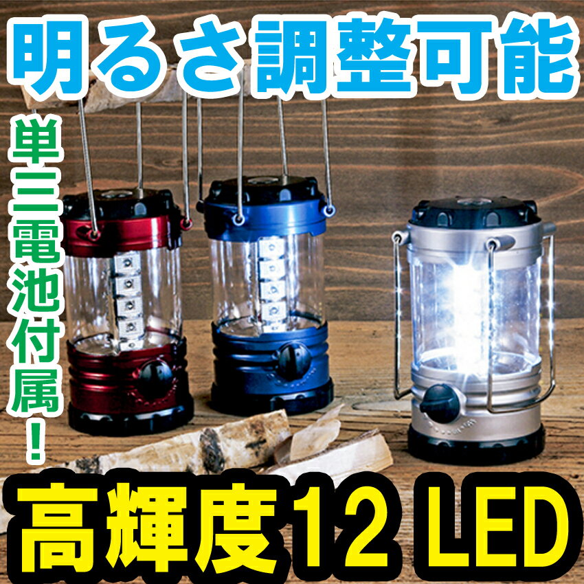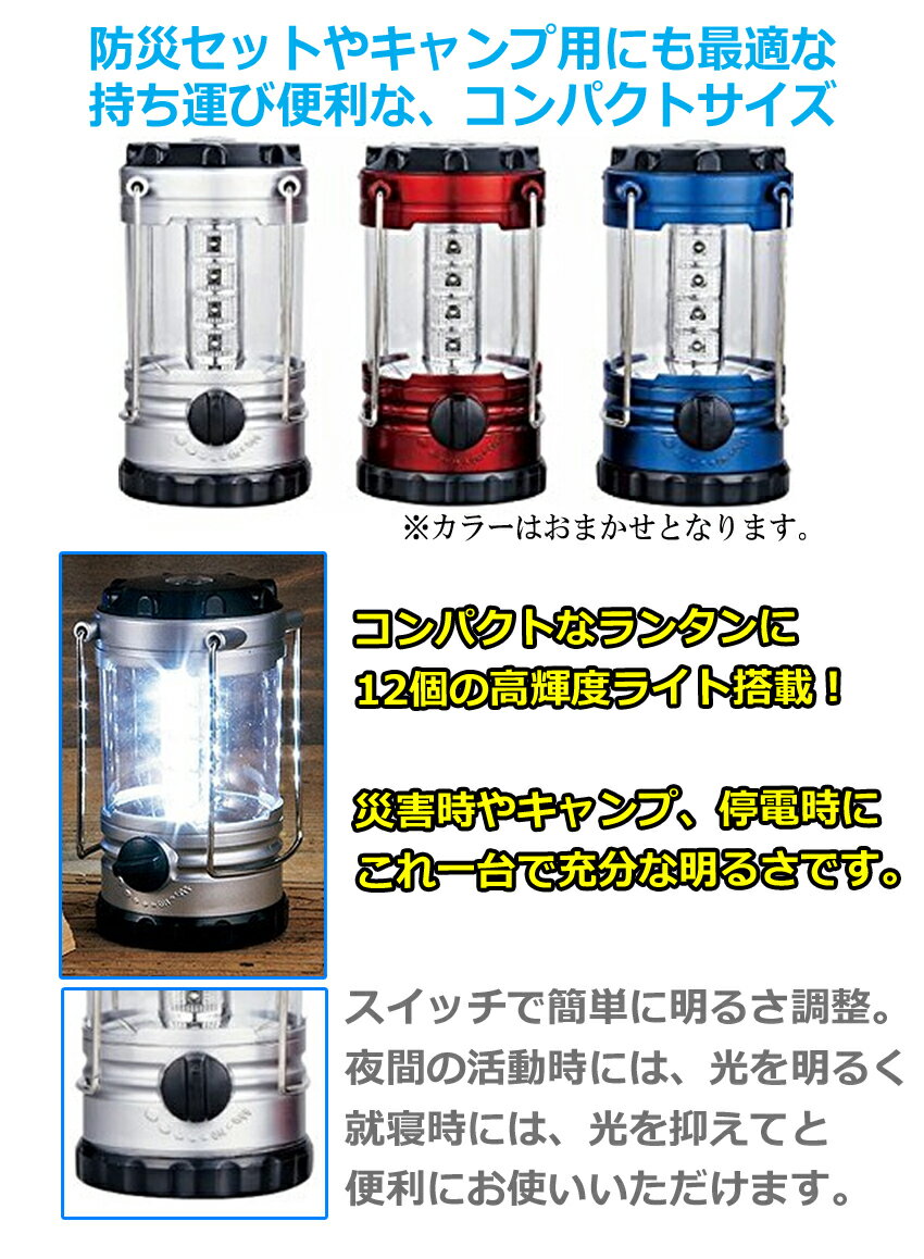 防災セットにも最適!驚きの低価格でまとめ買いにも!コンパクトなBODYで驚きの明るさ! 高輝度LED12灯ランタン 単三電池付属 防災に!停電時に!キャンプやアウトドアに! 小さく軽いので持ち運びもラクラク♪