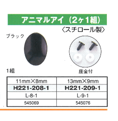 ハマナカあみぐるみEYE&パーツアニマルアイ(2ケ1組)ブラック11x8mm 13x9mm【編みぐるみアイとパーツ/ぬいぐるみ用目玉/あみぐるみ用目玉/hamanaka/H221-208/H221-209】