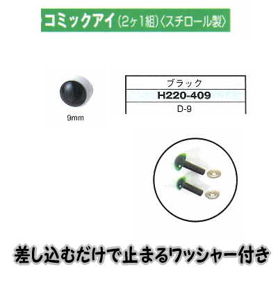 ハマナカあみぐるみEYE&パーツコミックアイ(2ケ1組)ブラック 9mm【編みぐるみアイとパーツ/ぬいぐるみ用目玉/あみぐるみ用目玉/hamanaka/H220-409】