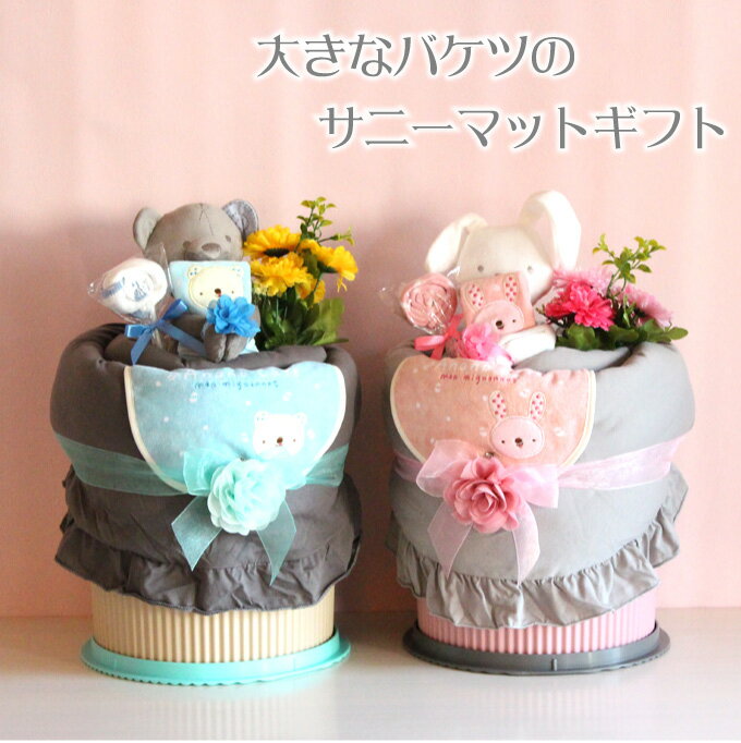 サニーマット 出産祝い 名入れ 刺しゅう ギフトセット 大人気バケツタイプおむつケーキ 数量限定 【サニーばけっとL】